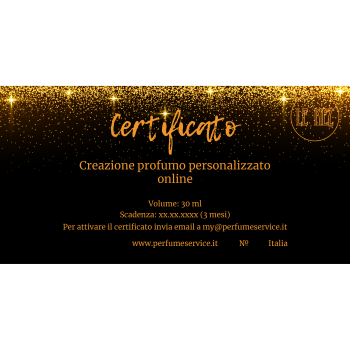 Certificato per la creazione di profumo personalizzato online 30 ml